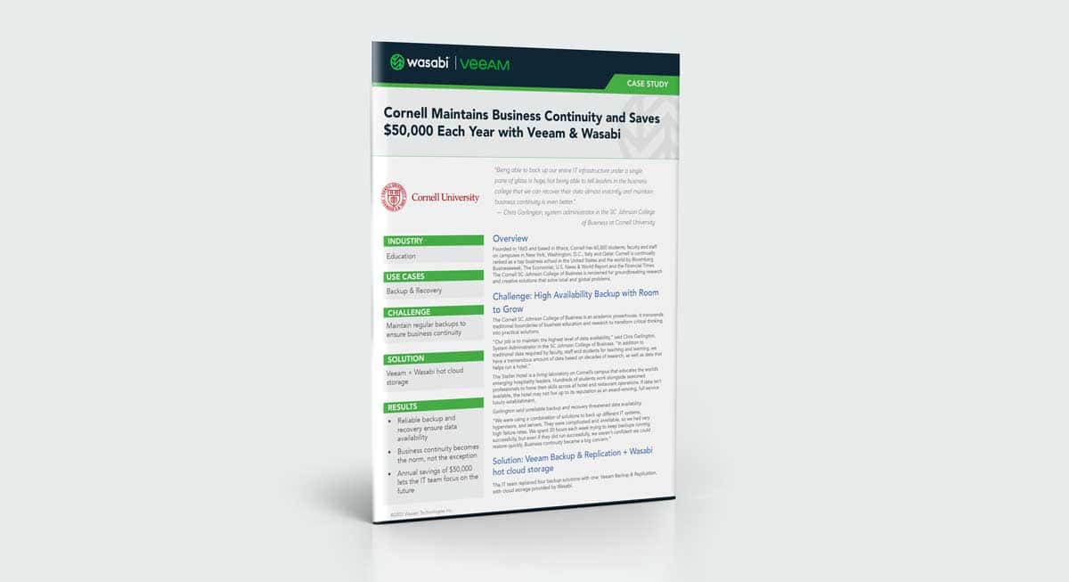 Wasabi, Veeam and Cornell University | Case Study
